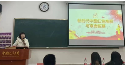 杨盈龙老师着重探讨了新时代红色电影的革命叙事,详细介绍了新时代红色电影革命叙事转向,并提到了在这一领域发生的转变,其中包括题材选择的变化、叙事手法的创新等。红色电影同样肩负着重要的历史使命:传承与升华红色基因,增强民众的国家认同感,唱响民族复兴的时代强音。通过对正能量的宣传,激发了更多观众的家国情怀。