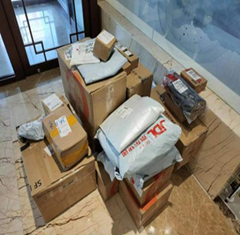 C队为大家提前采购的公共物资已经邮寄到住宿宾馆,在C队队长的带领下,ABC队部分男队员都热情的投入到物资分发工作中。