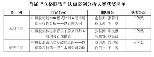 第一届“立格联盟”法商案例分析大赛由立格联盟商学院联席会理事会主办,华东政法大学商学院承办,华东政法大学研究生院、教务处协办。本次大赛旨在鼓励同学们综合运用所学的财经知识及法学知识,对具体企业进行相关案例研究,培养法商逻辑思维,提高法商复合知识应用能力和案例分析能力。